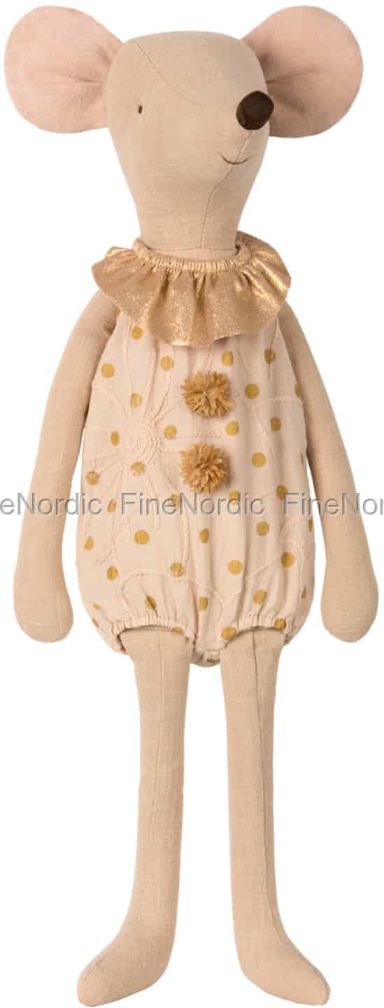 Diese MAXI Zirkus Mädchen Maus ist ein wunderbarer Spielgefährte für einen kleinen Jungen oder ein Mädchen. Sie hat ein breites Lächeln im Gesicht und liebt es zu spielen und Spaß zu haben. Sie trägt ein einteiliges, gepunktetes Outfit mit zwei Bommeln auf der Vorderseite und einen goldenen Kragen. Sie ist eine unterhaltsame Ergänzung für eine Maileg Sammlung und ein beliebtes Geburtstagsgeschenk für einen kleinen Maileg Sammler.
