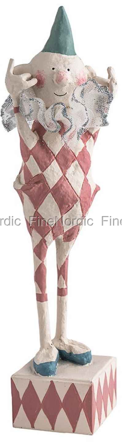 Medusa-Copenhagen´s Celebration Figur Hear no Evil ist eine weitere faszinierende Figur aus der Medusa-Copenhagen Kollektion. Diese Clownsfigur steht auf einer viereckigen Schachtel und sie hält ihre Ohren mit den Fingern zu. Der Clown trägt eine Mütze und die dazu passenden Schuhe. Er hat einen einteiligen, knielangen Anzug an. Auf beiden Seiten des Anzugs ist je eine große Hosentasche und das komplette Outfit ist mit einem Harlekin-Muster bedeckt. Um seinen Hals herum trägt er einen schicken Rüschenkragen. Er hat eine rote Nase und auch Wangen, genau wie auch viele andere Figuren von Medusa-Copenhagen. Diese Figur ist eine besondere Dekoration für das Zuhause und ein wunderbares Konversationsstück. Kaufen Sie sie allein oder zusammen mit den Figuren See no Evil und Speak no Evil von Medusa-Copenhagen, die außerdem in unserem Webshop erhältlich sind.