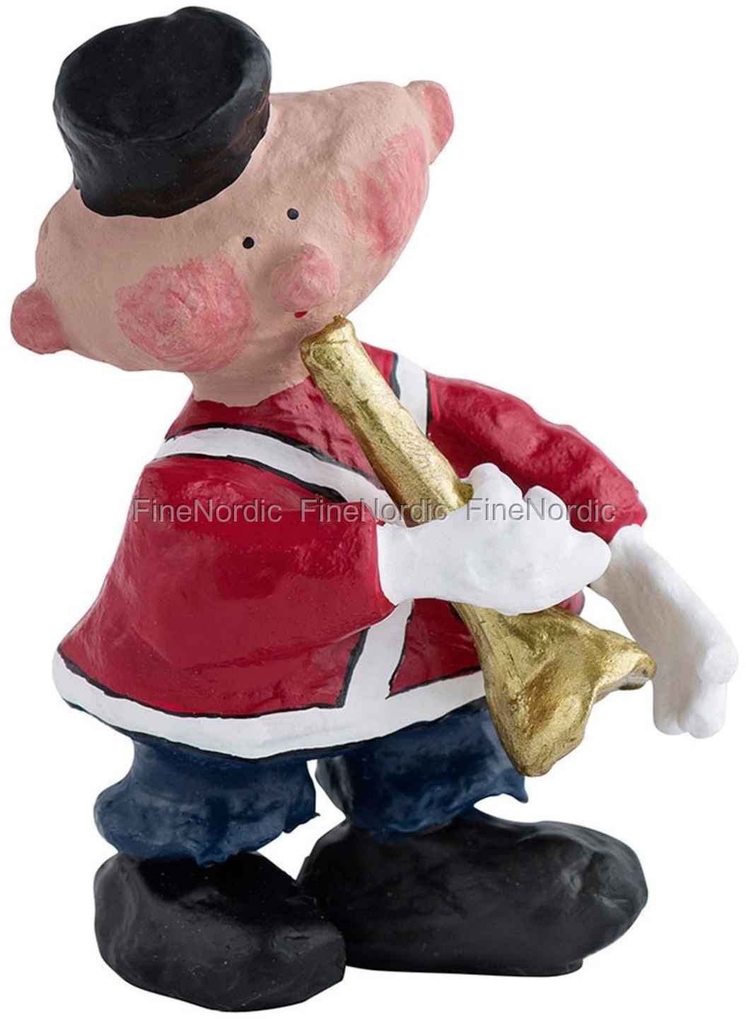 Kannst du auch eine Trompete hören? Kein Wunder, denn dieser kleine Medusa-Copenhagen Snuffel mit Trompete bläst ja auch so doll wie er kann in seine Trompete hinein. Seine Wangen und seine Nase sind von der Anstrengung ganz errötet. Musik zusammen mit seinen Freunden machen zu können, das mag dieser Snuffel am allerliebsten. Er liebt es sich mit seinen Zimbel spielenden, Pfeife blasenden und Trommel schlagenden Snuffelfreunden zu treffen und zusammen „snuffelige“ Musik zu spielen. Dann ziehen sie sich alle gleich an, mit ihren rot-weißen Mänteln, dunkelblauen Hosen und schwarzen Stiefeln und Hüten und spielen alles von Snuffel Rock bis klassische Snuffel Musik. Und natürlich gehört auch der Snuffelmajor mit zu diesem Treffen, denn dieser sorgt ja dafür, dass alle in gleichen Takt bleiben. Bestellen Sie den Trompeten Snuffel allein oder zusammen mit seinen Musik spielenden Freunden und genießen Sie den Anblick dieser amüsanten Weihnachtsdeko in Ihrem Zuhause.