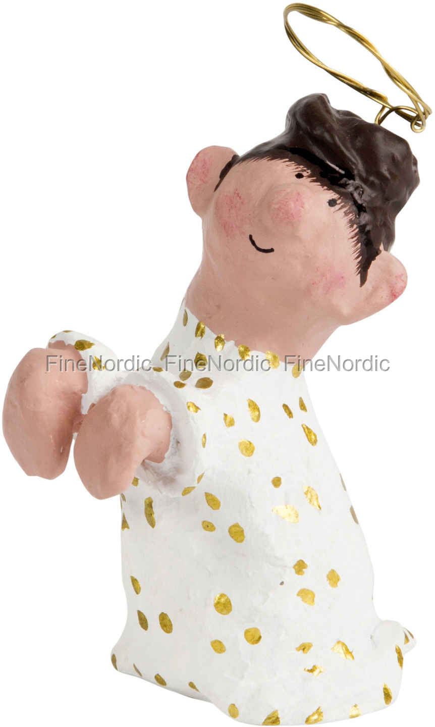 Der Engel Joy von Medusa-Copenhagen ist eine charmante Dekoration für die Weihnachtszeit. Sie können diesen Engel auf ein Regal oder eine Anrichte stellen oder sie an Ihren Händen an die Kante einer Vase oder eines Glases hängen. Von ihrem goldfarbenen Halo bis zum Ende ihres weißen, mit goldenen Tupfen bedeckten Gewandes ist sie ganze 7 cm groß. Ihre Wangen und Nase sehen gerötet aus, was für die Medusa-Copenhagen Figuren sehr typisch ist. Wenn Sie den Look des Joy Engels mögen, dann schauen Sie sich doch auch den Jessie Engel an, welchen wir außerdem in unserem Webshop anbieten.