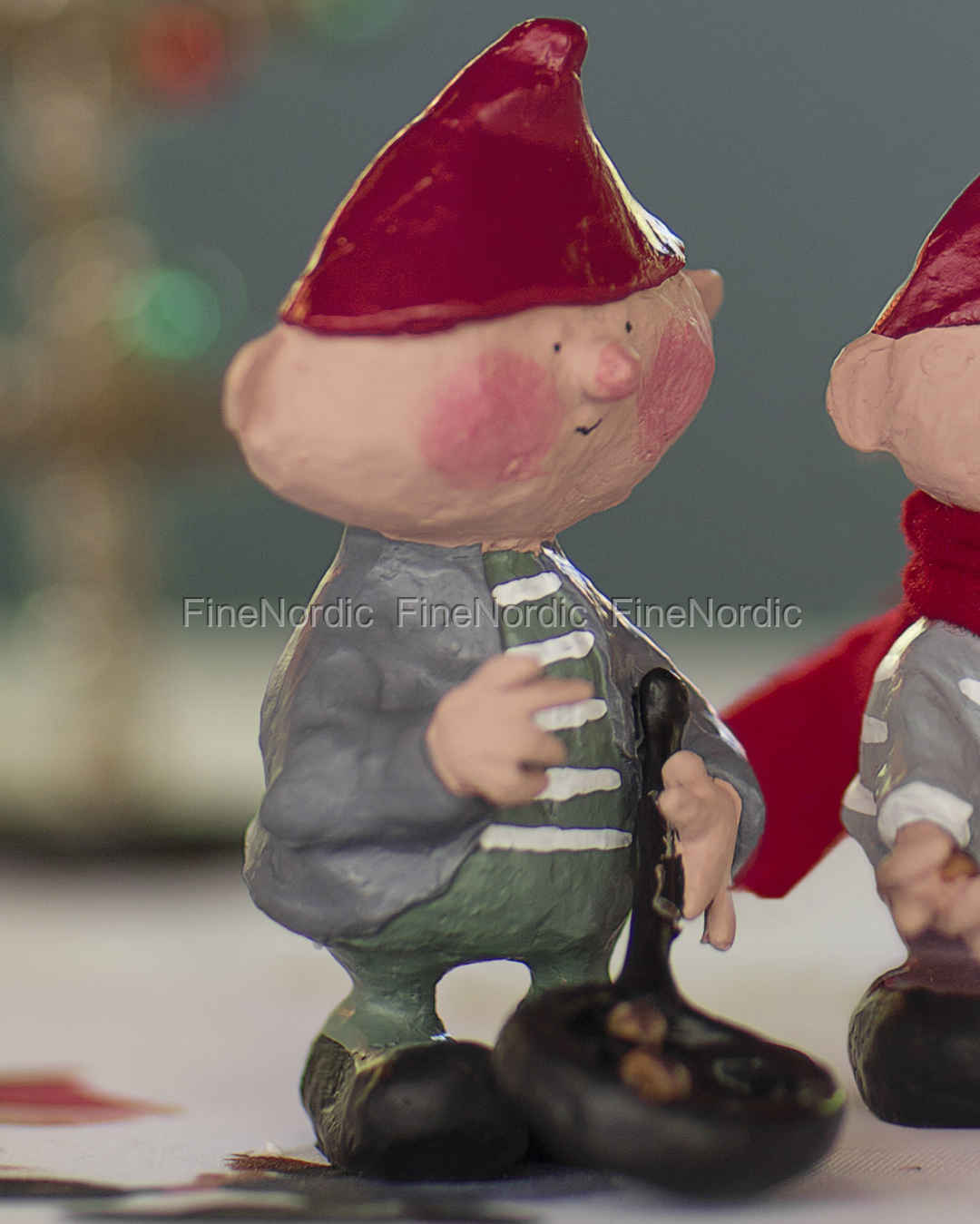 Der Nisling Claus von Medusa-Copenhagen ist ein glücklicher kleiner Kerl und er kocht dazu auch noch gerne. Man sieht ihn oft mit einer Bratpfanne in der Hand herumlaufen und damit brät er dann auch immer das eine oder andere. Vielleicht erklärt das ja auch seine pausbäckigen Wangen? Claus hat stets ein Lächeln auf den Lippen und er liebt es, mit seinen anderen Nisling Freunden zusammen zu sein. Er kocht gerne für sie und dann essen sie zusammen und schon bald hört man viel lautes Geschwätz und Gelächter. Nisling Claus gefällt sein roter, spitzer Hut sehr gut und daher trägt er ihn auch ständig. Er wäre sehr glücklich, wenn Sie ihn irgendwo in der Küche platzieren würden, vielleicht auf dem Fensterbrett oder auf einer Anrichte. Er wird dort nicht nur eine entzückende Dekoration sein, sondern auf diese Weise kann er auch bei allen Vorbereitungen für das große Weihnachtsessen zusehen.