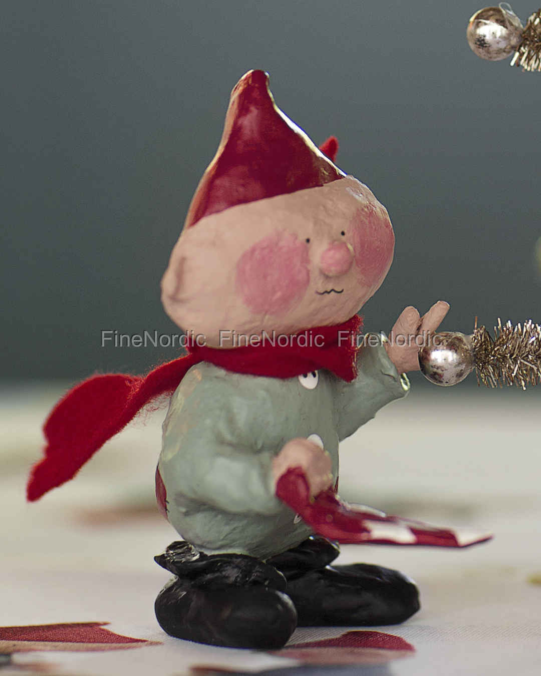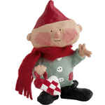 Der liebe Nisling Gustav von Medusa-Copenhagen hält ein geflochtenes Herz in seiner rechten Hand und mit der anderen Hand scheint er zu winken. Der 11 cm große Nisling mit seinen roten Pausbacken und der roten Nase sieht in seinem roten, spitzen Hut und seinem großen, roten Schal ganz bezaubernd aus. Er trägt ein geflicktes Outfit und schwarze Stiefel. Er steht gerne auf einem Regal oder einer Anrichte herum und macht dies am Allerliebsten zusammen mit seinen anderen Nisling Freunden. Der Nisling Gustav von Medusa-Copenhagen ist eine charmante Dekoration für die Weihnachtszeit.