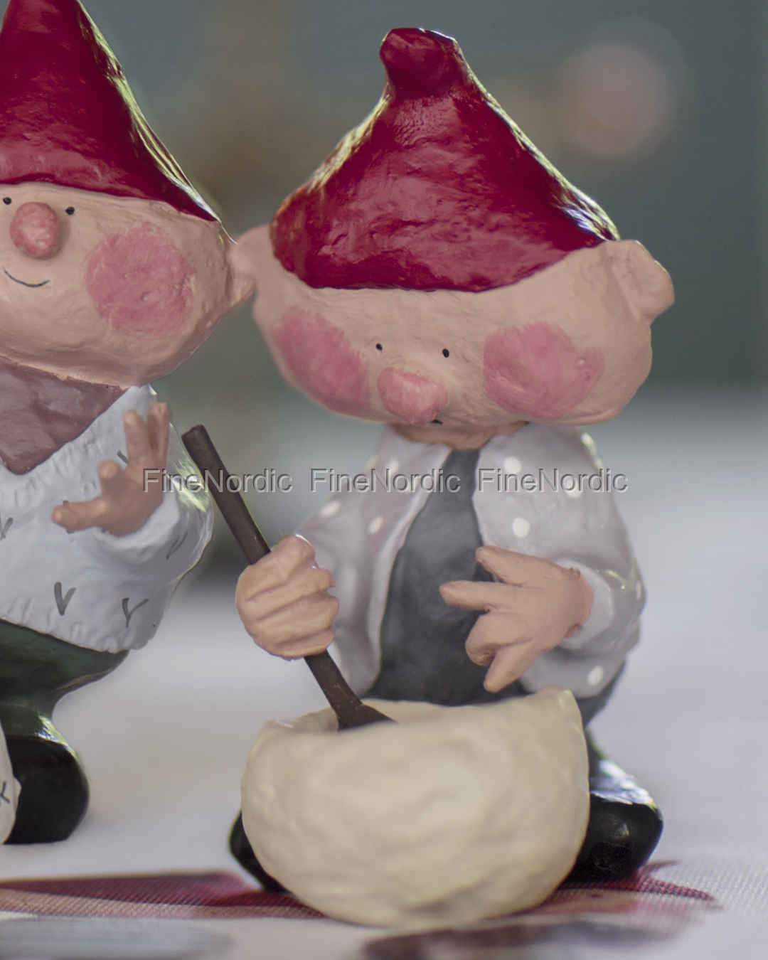 Nisling Oliver von Medusa-Copenhagen liebt es zu backen und zu kochen. Man sieht ihn ständig mit einer Schüssel in der Hand, in der er das eine oder andere anrührt. Er sieht dabei sehr konzentriert aus, vielleicht sind ja auch deswegen seine Wangen und seine Nase etwas gerötet? Oliver trägt eine hellgraue Jacke mit weißen Punkten, ein Hemd, eine schwarze Hose und schwarze Schuhe. Wie auch alle seine anderen Nisling-Freunde, trägt er auf dem Kopf eine rote Mütze. Oliver treibt sich gerne in der Küche herum, wo er Allen beim Kochen und Backen zusehen kann. Am liebsten ist er mit seinen Nisling Kumpels zusammen, so dass sie über die neuesten Rezepte quatschen können und auch über das Geschehen in der Küche. Nisling Oliver ist eine charmante Weihnachtsdekoration und er ist fast zu niedlich, um ihn nach Weihnachten direkt wieder in einen Schrank zu legen.