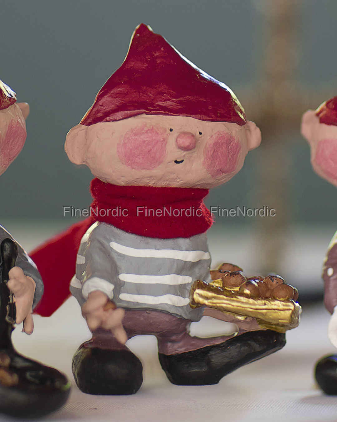 Eine weitere entzückende Nisling-Figur aus der Medusa-Copenhagen Kollektion ist dieser süße Oscar. Er hat dicke rote Pausbacken, eine kleine rote Nase und trägt immer ein etwas verschmitztes Lächeln auf seinem Gesicht. Genau dieses Lächeln ist es, weshalb man sich wundert, was denn das wohl sein könnte, was er da in der Hand hält? Hat er vielleicht ein paar Leckereien aus der Küche mitgehen lassen? Was auch immer es ist, er sieht ziemlich zufrieden mit sich selbst aus. Oscar trägt einen großen roten Schal, ein grau-weiß gestreiftes Hemd, braune Hosen und schwarze Schuhe. Auf seinem Kopf thront eine rote Mütze. Nisling Oscar ist ein fröhlicher kleiner Kerl, der immer für Schabernack zu haben ist. Aber er ist immer freundlich und will einfach Spaß mit seinen anderen Nisling Freunden haben. In der Weihnachtszeit ist er außerdem eine charmante Dekoration für eine Anrichte oder die Fensterbank.