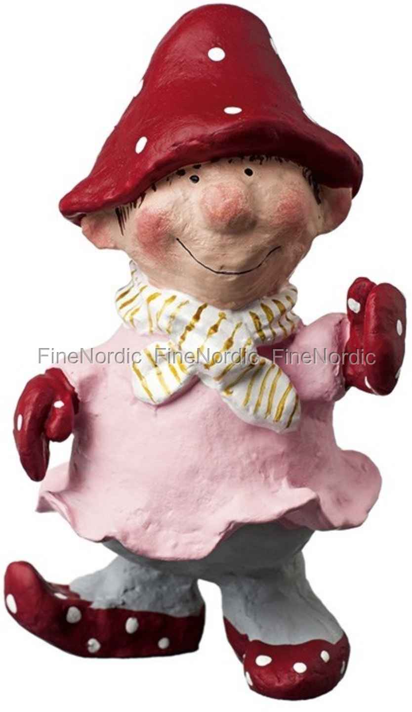 Bella, das Pilzmädchen in rosafarbenen Kleid, ist eine bezaubernde Figur von Medusa-Copenhagen. Bella liebt ihr rosafarbenes Kleid und auch die fröhlichen weißen Punkte, die ihren roten Hut, Handschuhe und Schühchen bedecken. Bella ist eine sehr stilvolle kleine Pilz Dame und sie liebt es, immer die neuesten Modeschals zu tragen. Sie ist ein fröhliches Pilzmädchen, stets gut gelaunt und sie ist immer am Lächeln. Gerne steht sie auf Fensterbänken rum, wo sie das Geschehen draußen beobachten kann, oder in Wintergarten, wo sie all die schönen Pflanzen und Blumen genießen kann. Vielleicht möchten Sie Bella zu sich nach Hause einladen, oder aber kennen Sie eventuell jemanden, der Bellas Gesellschaft genießen würde?
