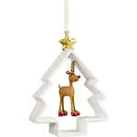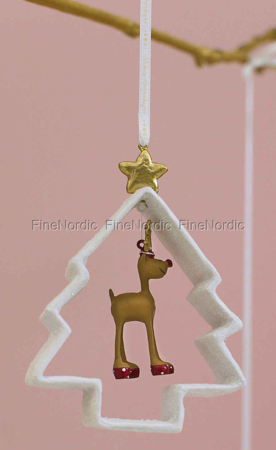 Rudolphs Glitzer Baum ist ein weiteres entzückendes Weihnachtsornament aus dem Hause Medusa-Copenhagen. Es besteht aus einem Rentier, das in der Mitte der Außenlinie eines weißen Weihnachtsbaums hängt. Auf dem Baum befindet sich ein kleiner goldener Stern, der an einem Band befestigt ist und mit dem Sie das Ornament aufhängen können. Man kann sofort erkennen, dass das Schmuckstück mit viel Liebe zum Detail gefertigt wurde, denn warum sonst sollten die Hufe des Rentiers rot lackiert und mit fröhlichen kleinen weißen Punkten bestückt sein? Das Rentier hat dazu noch ein goldenes Geweih und eine lustige rote Nase. Rudolfs Glitzer Baum ist ein schöner Weihnachtsschmuck für den Weihnachtsbaum. Sie können ihn auch an einen Tannenzweig oder einen Ast hängen und Ihrem Zuhause so eine charmante und einzigartige Deko hinzuzufügen. Rudolfs Glitter Baum ist auch eine wunderbare Geschenkidee für einen lieben Freund oder ein geschätztes Familienmitglied.