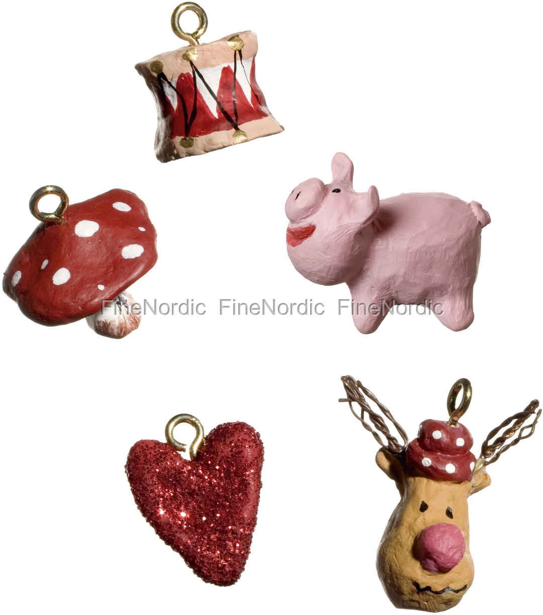 Mit dem charmanten 5-teiligen Small World Set von Medusa-Copenhagen können Sie einen Tannenzweig, einen Adventskranz oder einen Weihnachtsbaum hübsch dekorieren. Die fünf entzückenden, handgemalten Figuren sind jeweils mit einem Haken ausgestattet, was das Aufhängen mit einem Band oder Draht kinderleicht macht. Das fünfteilige Set besteht aus einem Schwein, einem Herz, einem Pilz, einem Rentierkopf und einer Trommel und diese sind etwa 2 cm groß. Sie sind alle in einem bezaubernden, unperfekten und für Medusa-Copenhagen so typischen Stil gestaltet, welcher ihnen ihren einzigartigen Look verleiht. Sie können sie auch an festlich eingepackte Geschenke anhängen oder sie als Gastgebergeschenk nutzen, wenn Sie in der Vorweihnachtszeit zu einem Abendessen eingeladen werden.