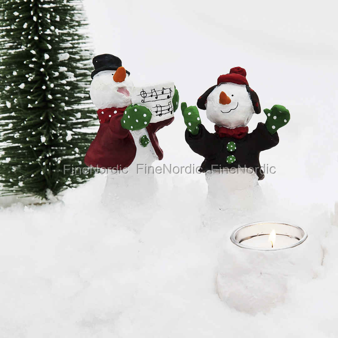 Wem würde es denn nicht gefallen, wenn zwei Schneemänner, Weihnachtslieder singend, vor der Tür auftauchen würden? In der fantasievollen Welt von Medusa-Copenhagen ist dies und noch vieles anderes sehr gut möglich. Das 3-teilige Snow Carols Schneemänner Set von Medusa-Copenhagen könnte nicht viel niedlicher sein, als es bereits ist. Ein Schneemann ist am Dirigieren, der andere hält Noten in der Hand und singt mit weit geöffnetem Mund. Sie sehen aus wie ein paar gute Kumpels, die einen schönen Tag miteinander verbringen. Legen Sie einfach ein Teelicht in den Schneeball-Teelichthalter und stellen Sie ihn mit den beiden singenden Schneemännern auf ein Regal oder ein Fensterbrett und schon haben Sie dem Raum einen charmanten Blickfang hinzugefügt. Der Dirigent trägt einen roten Hut und einen Pullover mit zwei grünen Knöpfen, die mit fröhlichen weißen Punkten bedeckt sind und außerdem auch ein Paar grüne Handschuhe mit dem gleichen Punktmuster. Der Sänger trägt die gleichen Handschuhe, einen schwarzen Zylinder, einen roten Mantel und je einen roten und einen grünen Knopf, welche beide mit weißen Punkten bedeckt sind. Dieses 3-teilige Set ist eine äußerst hinreißende Weihnachtsdekoration, die nicht nur ein wenig Weihnachtsstimmung in Ihrem Zuhause verbreiten wird, sondern auch eine schöne Geschenkidee für einen lieben Menschen sein kann.