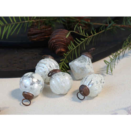 Chic Antique Mini Weihnachtskugel Antik Creme 5er Set in Seidentüte