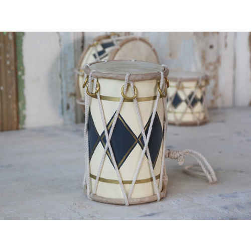 Chic Antique Trommel mit Leder Antique Creme Handgemacht Ø 14 cm