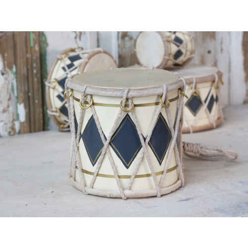 Chic Antique Trommel mit Leder Antique Creme Handgemacht Ø 16 cm