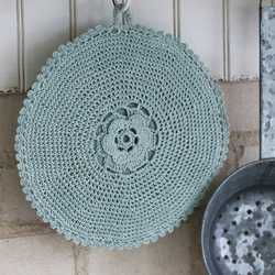 Chic Antique Topflappen Gehäkelt mit Rose - Verte Ø 20 cm - 2er Set