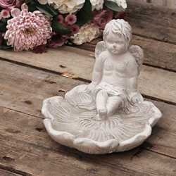 Chic Antique Vogelbad mit Engel - Französisches Grau