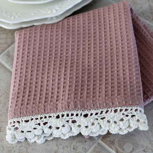Chic Antique Geschirrtuch mit Spitze - Altrosa