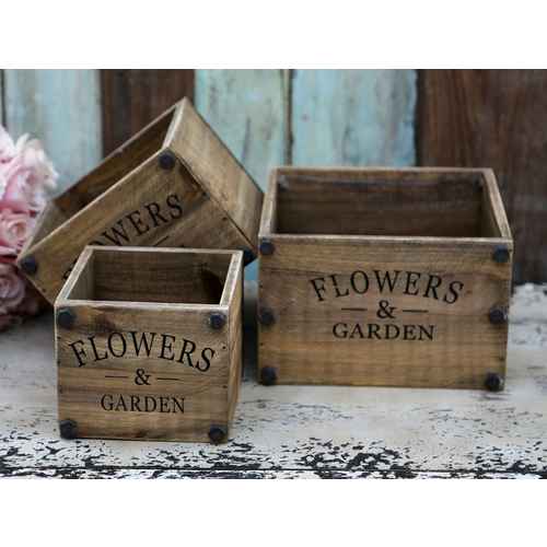 Chic Antique Antike Holzkisten Blumen & Garten - 3-er Set