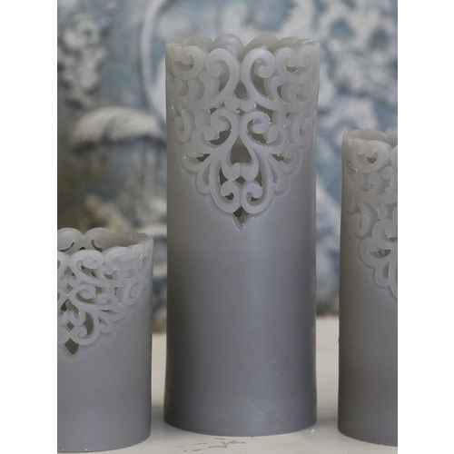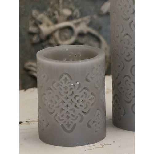 Chic Antique Kerze für Batterien "Lace" Grau - H 15 cm
