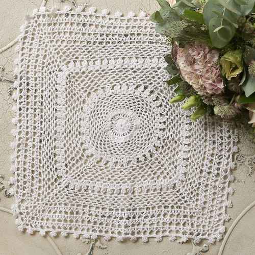Chic Antique Serviette Gehäkelt - Weiß - Handarbeit -35x35 cm