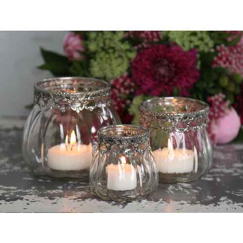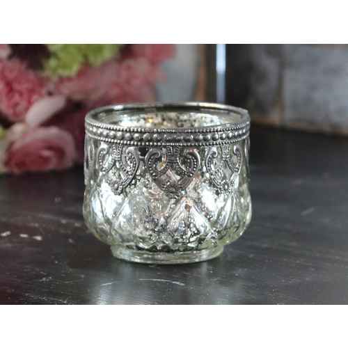 Chic Antique Teelichthalter mit Perlen-Rand - Glas