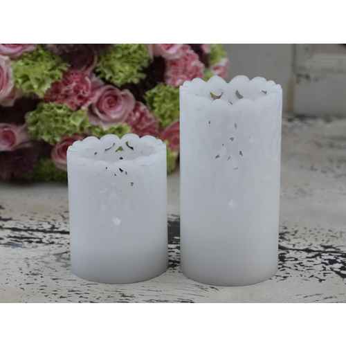 Chic Antique Kerze für Batterien, "Lace" Weiß H 10 cm