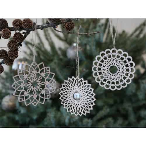Chic Antique Ornament mit Glitzerkante 3er Set Natur