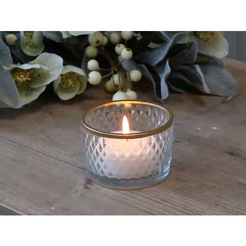 Chic Antique Teelichthalter mit Goldrand Klar C
