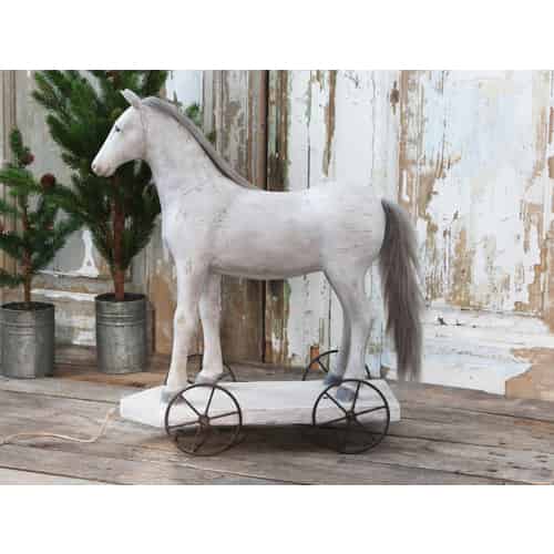 Chic Antique Vintage Pferd auf Räder Antique Creme Groß
