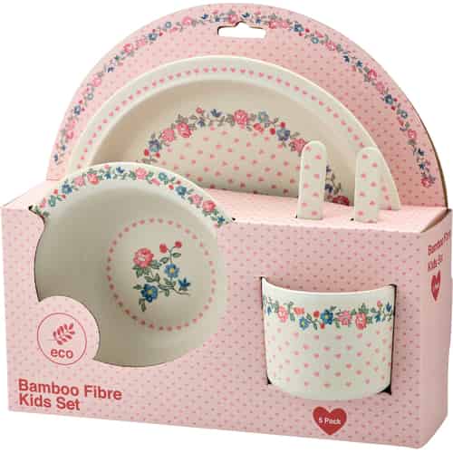 GreenGate Bambus Kinder Dinner Set Ruby Petit White 4er Set