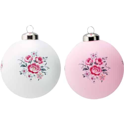 GreenGate Weihnachtskugel Glas Nicoline White & Pale Pink 2er Set