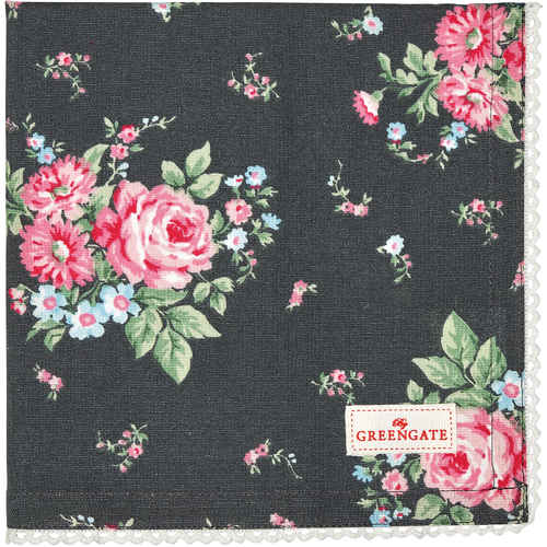 GreenGate Stoffserviette - Napkin With Lace Marley Dark Grey