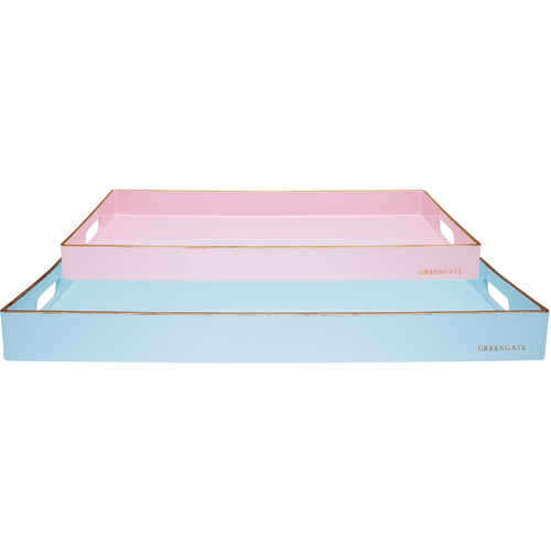 GreenGate Tablett - Tray Rectangular Pale Blue with Gold 2er Set