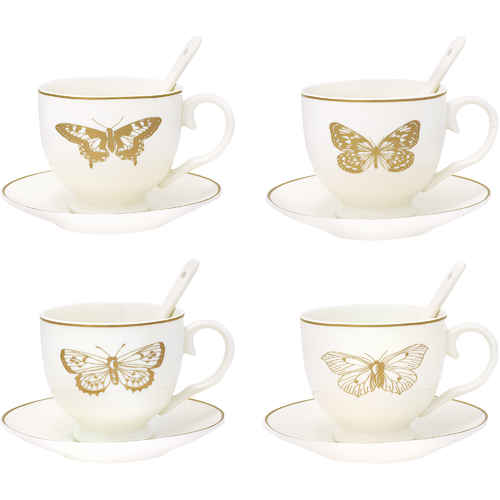 GreenGate Tasse mit Untertasse - Cup & Saucer with Spoon Butterfly Gold 4er Set