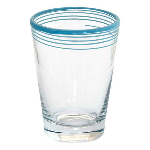 GreenGate Wasserglas Waterglass with Stripe Rim Pale Blue