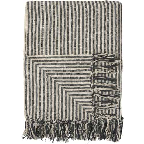 Ib Laursen Plaid Creme/Dunkelgrau Kleinen Streifen 130 x 160 cm