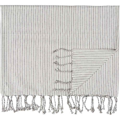 Ib Laursen Hammam Handtuch mit Fransen Weiß mit Anthrazitmuster 160 x 106 cm