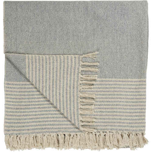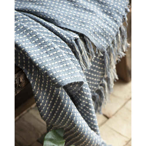 Ib Laursen Plaid Staubigblau mit Creme Eckmuster 160 x 130 cm