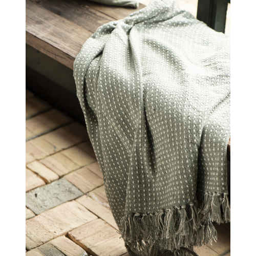 Ib Laursen Plaid Staubig Grün mit Creme Eckmuster