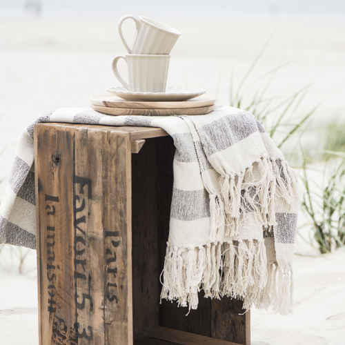 Ib Laursen Plaid Creme mit Schwarzem Streifen 160 x 130 cm
