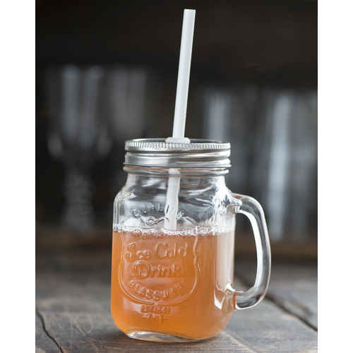 Ib Laursen Glasbecher mit Deckel und Strohhalm 400 ml