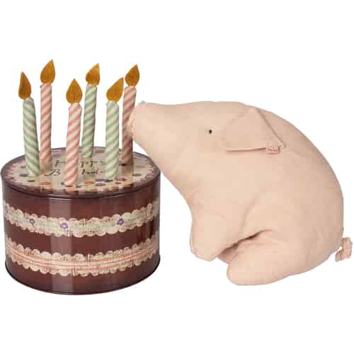 Maileg Geburtstagschwein in Gebäckdose mit Kerzen