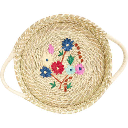 Rice Raffia Brotkorb - Rund - Flower Stickerei - Medium