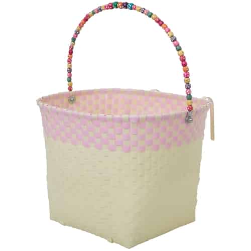 Rice Gewebt Kunststoff Fahrradkorb in Creme - Soft Pink Rand