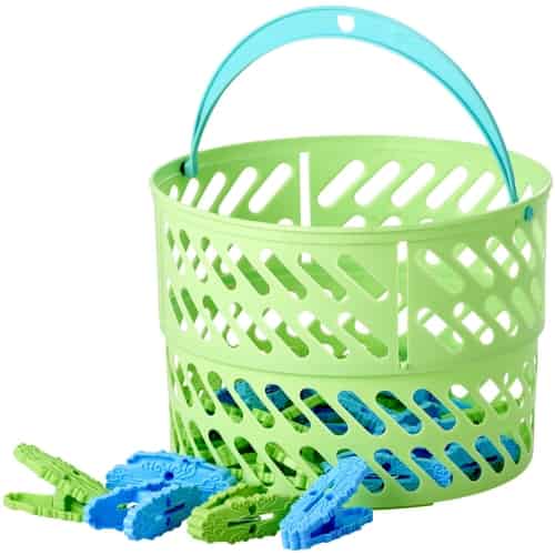 Rice Wäscheklammern Set Korb und 20 Wäscheklammern Grün und Blau