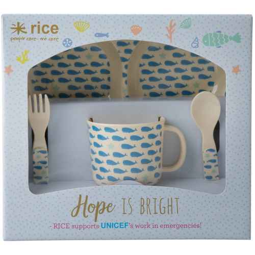 Rice Baby Melamin Abendessen Geschenkbox - Wal und Seestern 4er Set