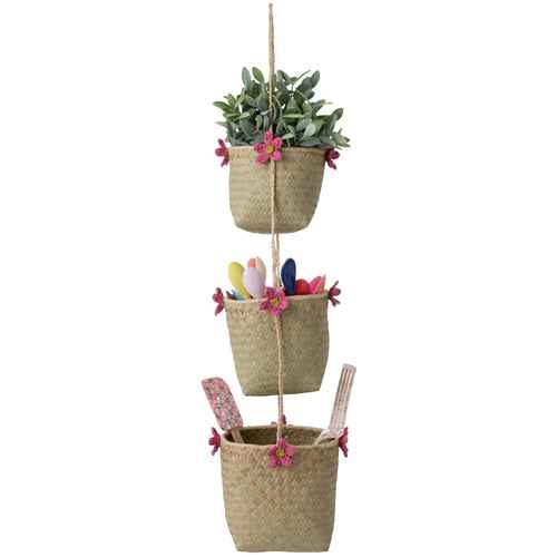 Rice hängenden Seegras Speicherkörbe - rosa Häkelblumen