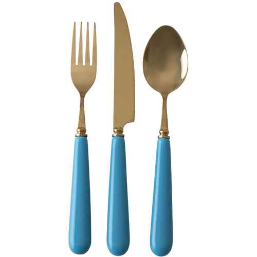 Rice Besteck in Messing Look - Sky Blue Keramikgriff - 3er Set