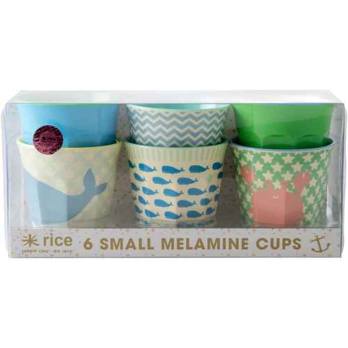 Rice Box - 6 kleinen Melamin Bechern in Blau und Grün Kids Ocean Life 6et Set