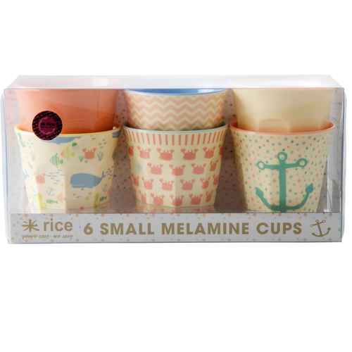 Rice Box - 6 kleinen Melamin Bechern in Pink and Coral Kids Ocean Life - 6er Set