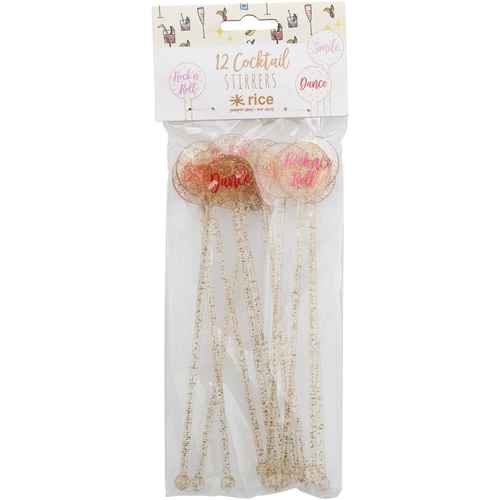 Rice 12 Cocktailrührer in Goldglitter - verschiedenen Wörtern