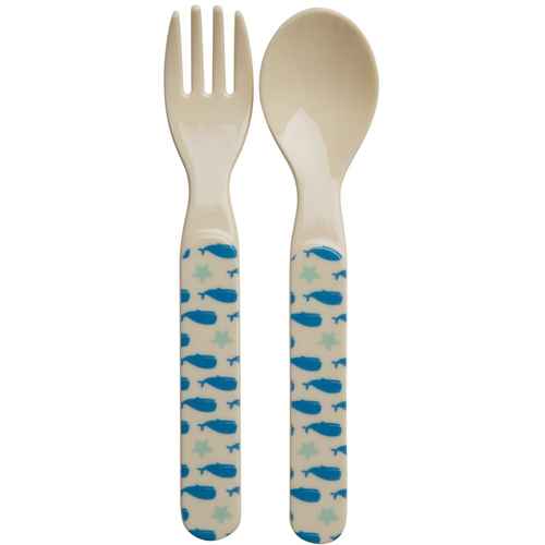 Rice Melamin Kinderlöffel und Gabel - Wal und Seestern