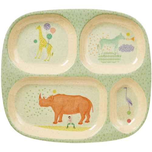 Rice Melamin Bambus Kinderteller mit 4 Fächern - Boys Animal